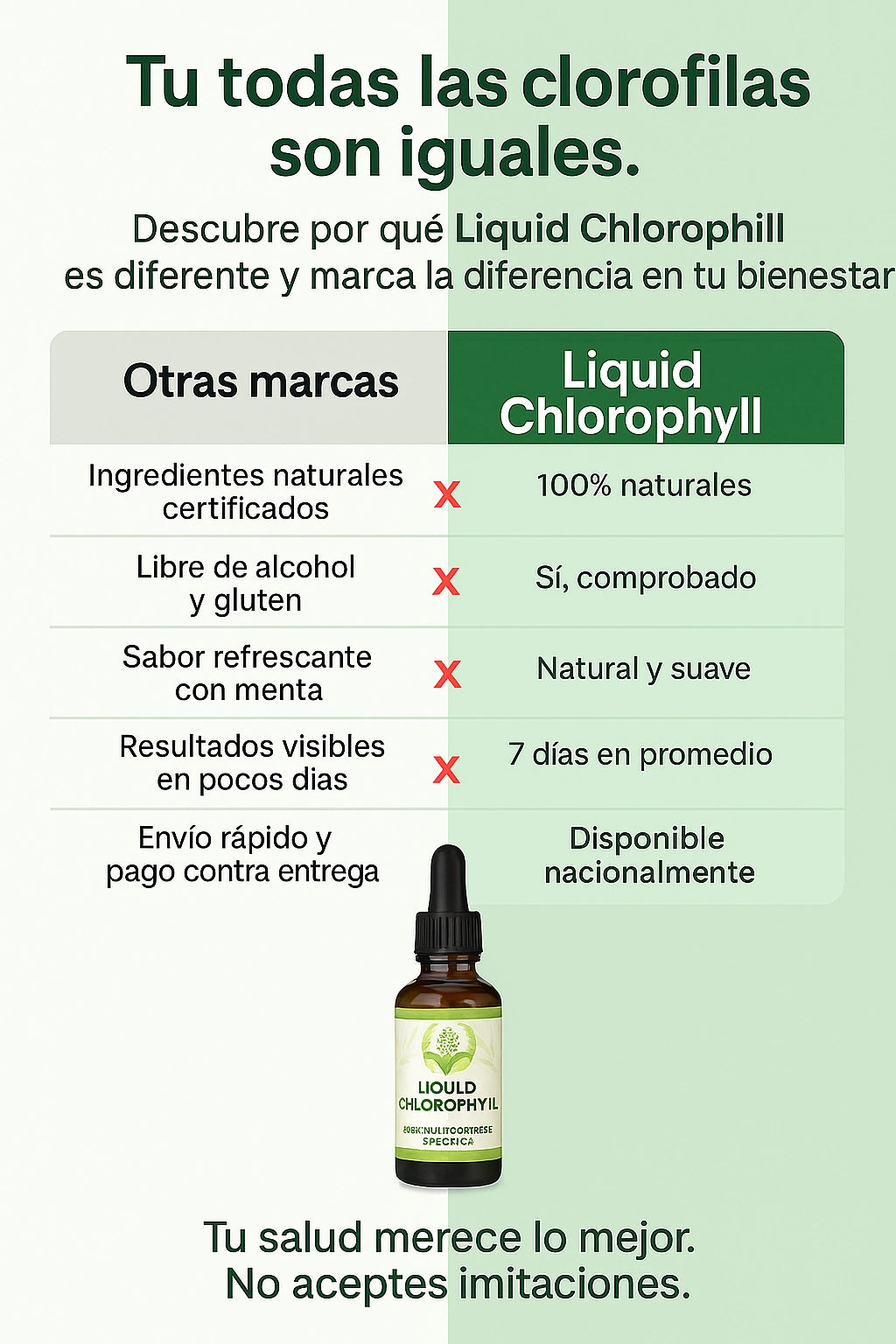 No. Nuestra clorofila líquida es 100 % natural, sin químicos, sin gluten ni alcohol.