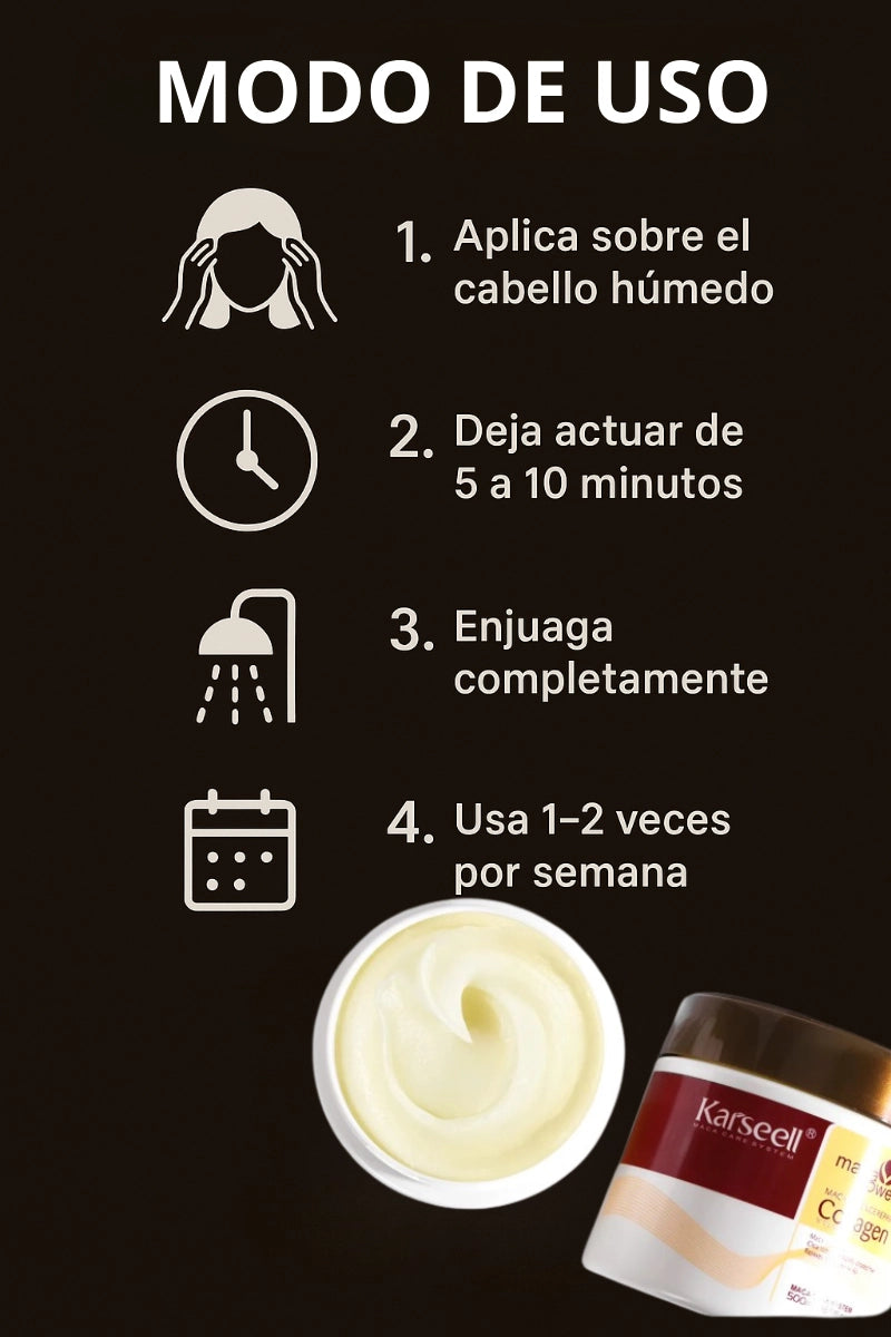 👉 Se recomienda usarla 1 a 2 veces por semana, dependiendo del nivel de daño en tu cabello. Si tu cabello está muy maltratado, úsala dos veces, si está en mantenimiento, una vez es suficiente.